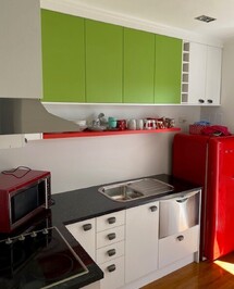 "'I have two tiny houses & was recommended Heather & Chris for my Waiheke studio kitchen, which now looks great, so didn't hesitate to revisit when my art deco cottage kitchen needed a face lift. I didn't have much budget, but Heather's ideas for colour & impact gave an end result that is both retro and cool, and Chris brought them to life. Thanks guys for being so friendly & professional & especially for putting a smile on my face everytime I go into my kitchen during these tough Covid times."